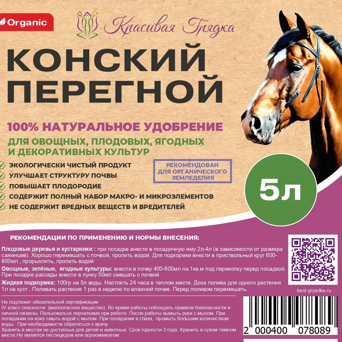 Перегной Конского навоза Красивая Грядка